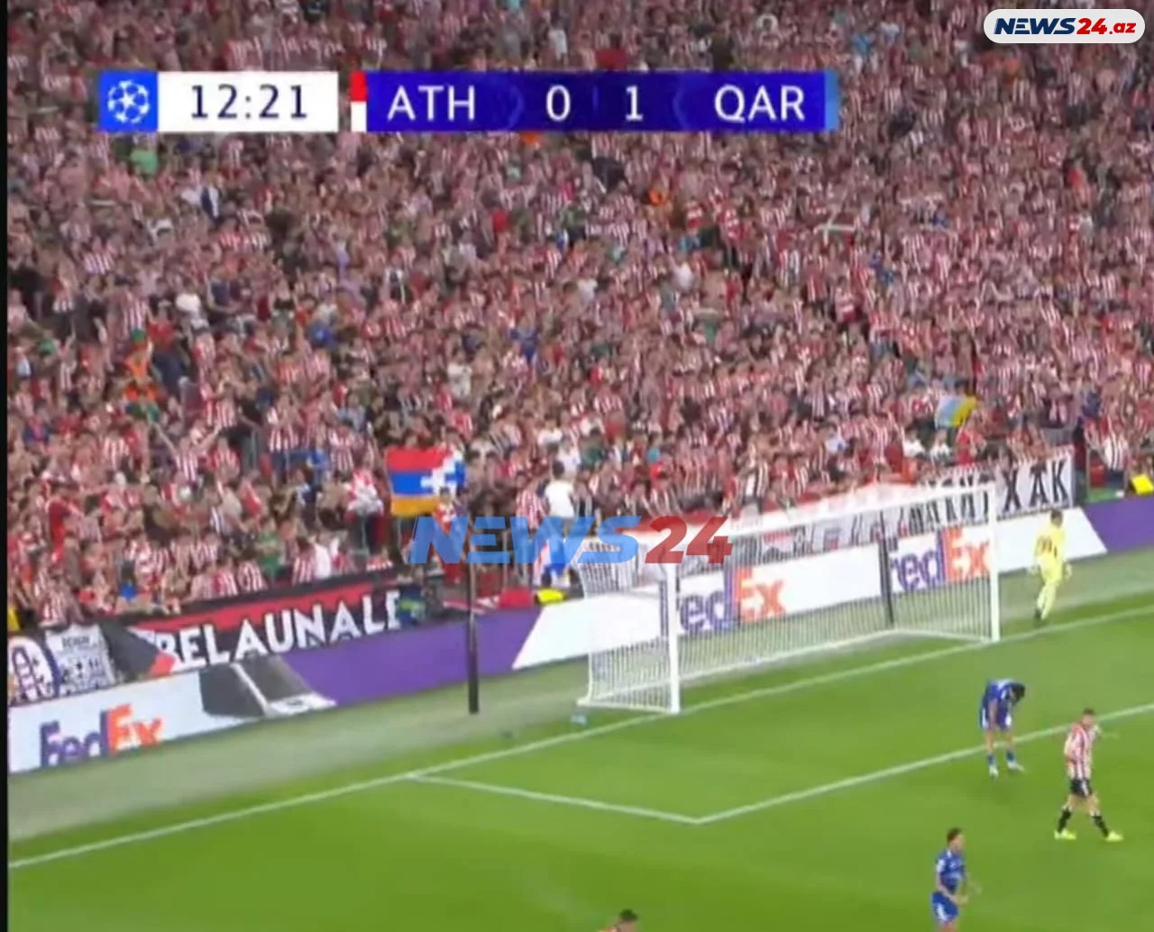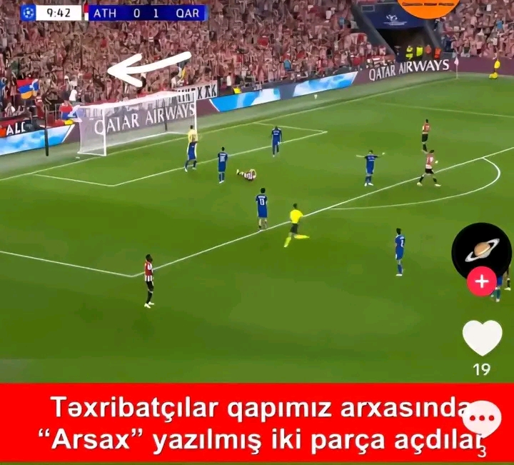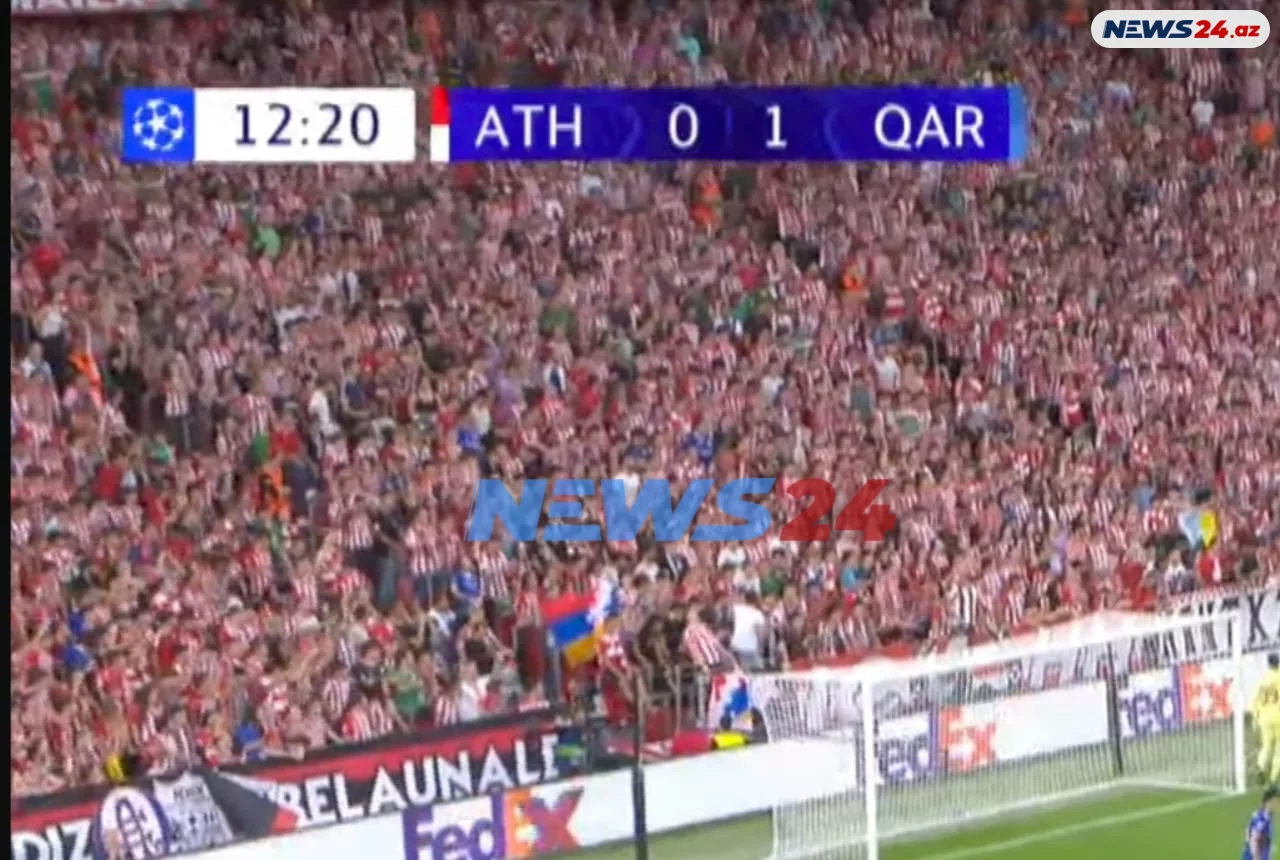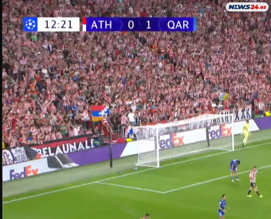 Arazpress.com News24.az-a istinadən xəbər verir ki, qarşılaşmanın keçirildiyi “San Mames” stadionunda qondarma “Dağlıq Qarabağ respublikası”nın bayrağı qaldırılıb.