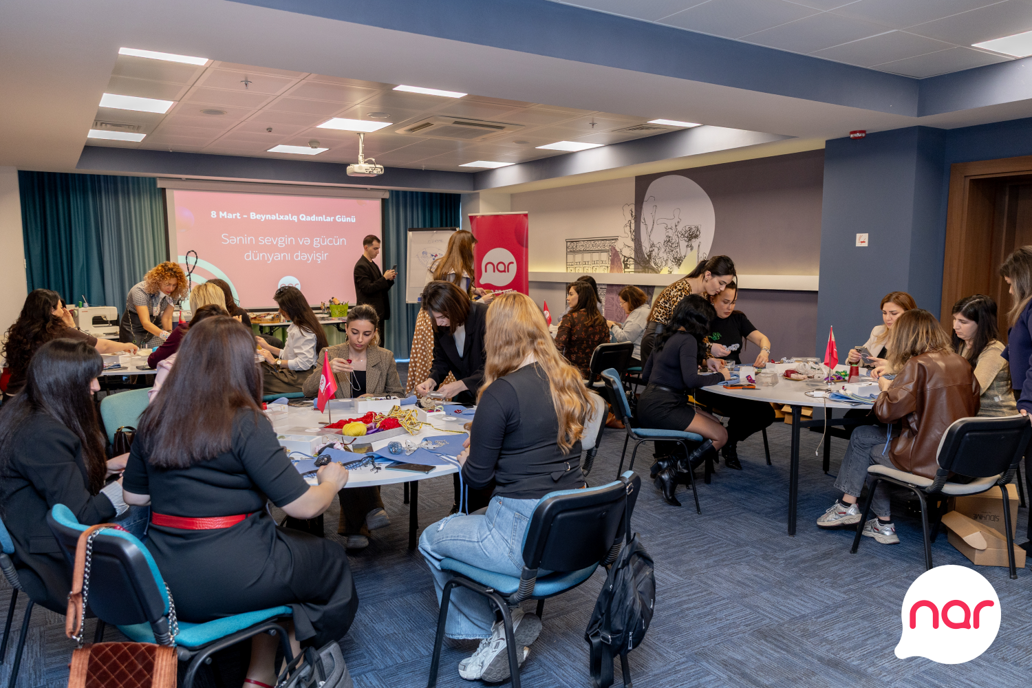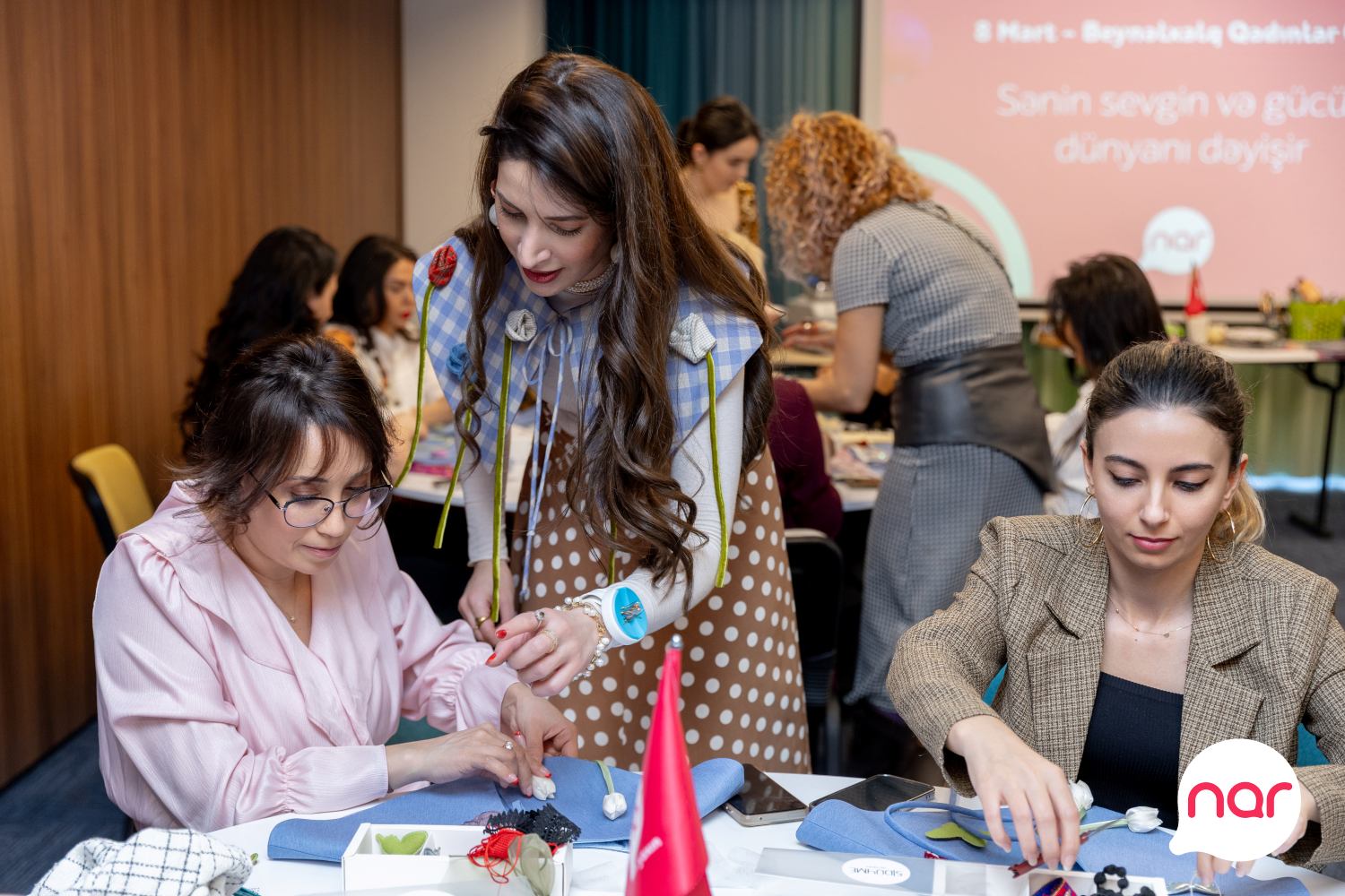 “Nar” 8 Mart – Beynəlxalq Qadınlar Günü münasibətilə xanım jurnalistlər üçün xüsusi tədbir təşkil edib. Arazpress.com qurumun mətbuat xidmətinin məlumatına əsasən bildirir ki, media nümayəndələri üçün keçirilən incəsənət master-klassında iştirakçılar Azərbaycanın yerli brendinin təcrübəli təlimçilərinin dəstəyi ilə öz zövqlərini və fərdi üslublarını əks etdirən yaxalıqlar hazırlayıblar. Yaradıcılıq prosesi iştirakçılar üçün həm estetik təcrübə, həm də ünsiyyət və paylaşım imkanı yaradıb.